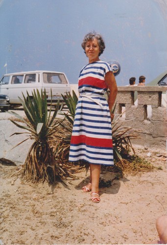 Maria José Alves Pereira da Silva na sua casa de praia na cidade de Espinho na década de 1980, onde se inspirou para a realização e inúmeros poemas, nomeadamente sonetos.